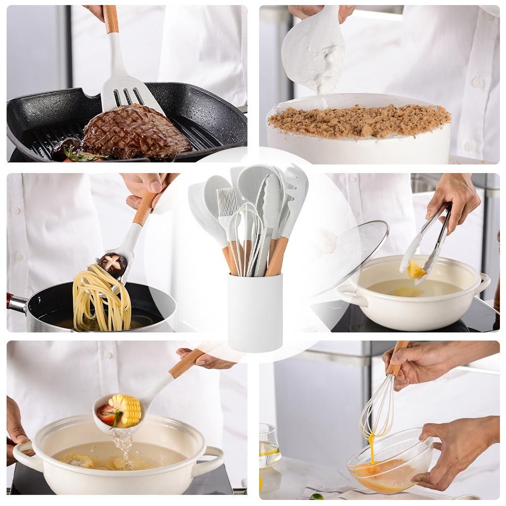 Buy Silicone Cooking Utensil Set Non-stick Kitchen Utensils Set 11 PCS Heat Resistant Kitchen Tools with Wooden Handle in Nigeria