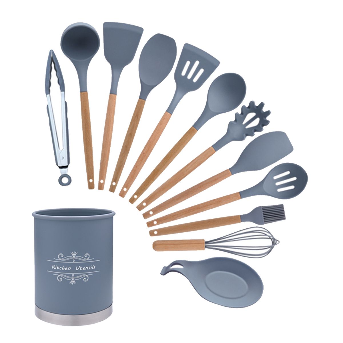 The cooking utensil sets include 14 pcs silicone cooking tools and a storage bucket, variety to meet all your needs.