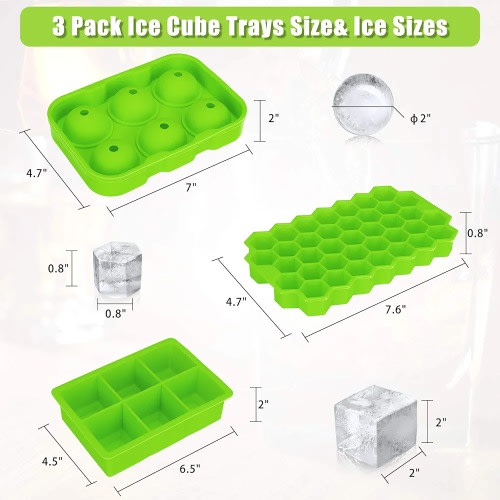Buy Silicone Ice Molds With Lids - Set Of 3 Shapes - Green in Nigeria