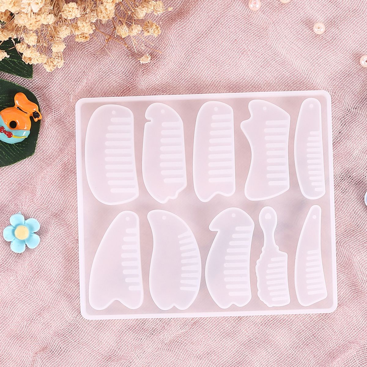 The silicone mold has 10 grids to make combs of different shapes, easy to remove, DIY handmade making accessories.