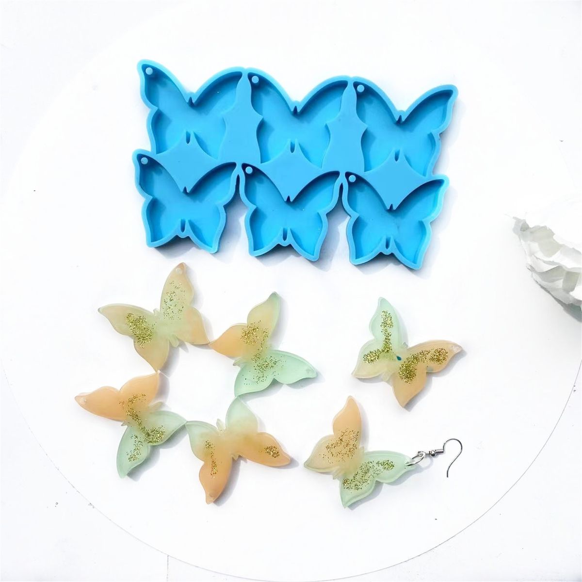 This silicone mold can be used to make butterfly earring jewelry. After use, you will find that the material will not stick to the mold.