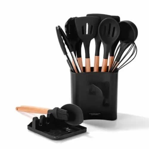 Silicone Cooking Spoon Set With Spoon Rest Holder 12 Pcs