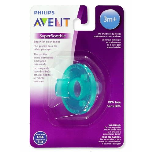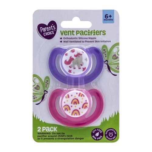 Comfort your baby with these Pacifiers. These silicone pacifiers feature a soft orthodontic nipple that works to soothe and calm your sweet little one. Each pacifier is made with BPA-free materials, making them a safe product for your baby to enjoy, and their slightly curved shield design with ventilation holes prevents skin irritation. With two pacifiers in every pack for children six months and older, you'll be able to keep your baby's mood bright and content. When you're ready to disinfect your baby's pacifiers, just toss them onto the top shelf of your dishwasher to make cleaning a breeze. Complete your baby's nursery with a pack of these Pacifiers.