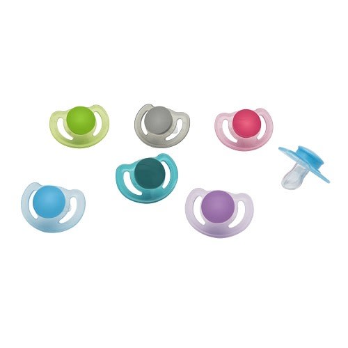 hese soothers are an improvement on the original NUK shape, taken from a Mothers nipple as she feeds her child. Which is the optimal fit for a babies mouth as they suck on the soother.