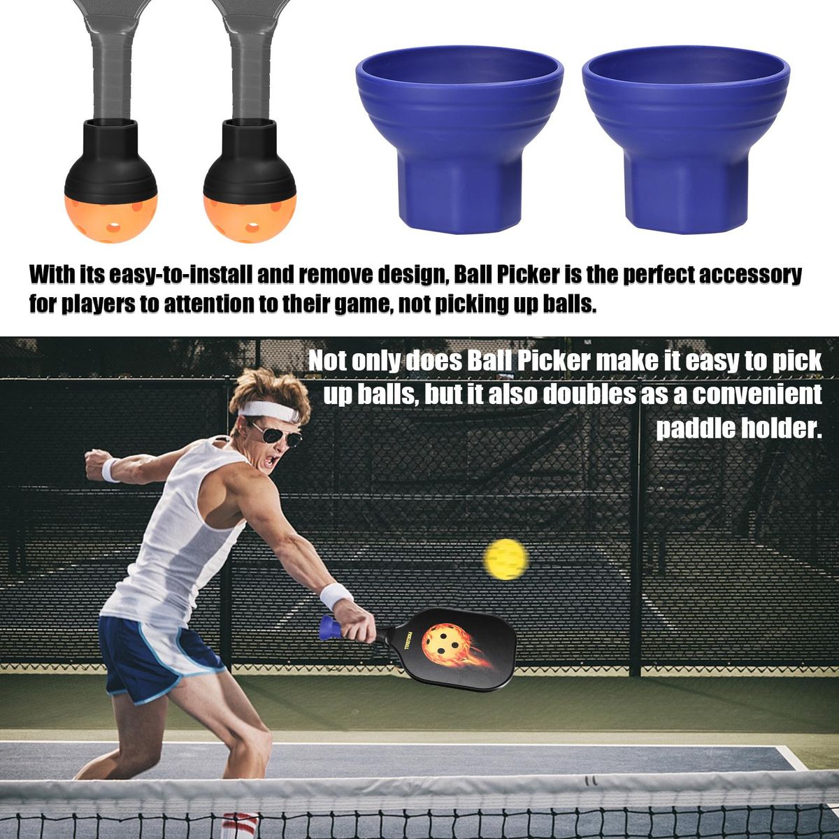 Buy Silicone Pickleball Ball Retriever 2pcs Pick Up Pickleball Balls Tool Set Pickleball Paddle Bottom Attachement Ball Picker Kit in Nigeria
