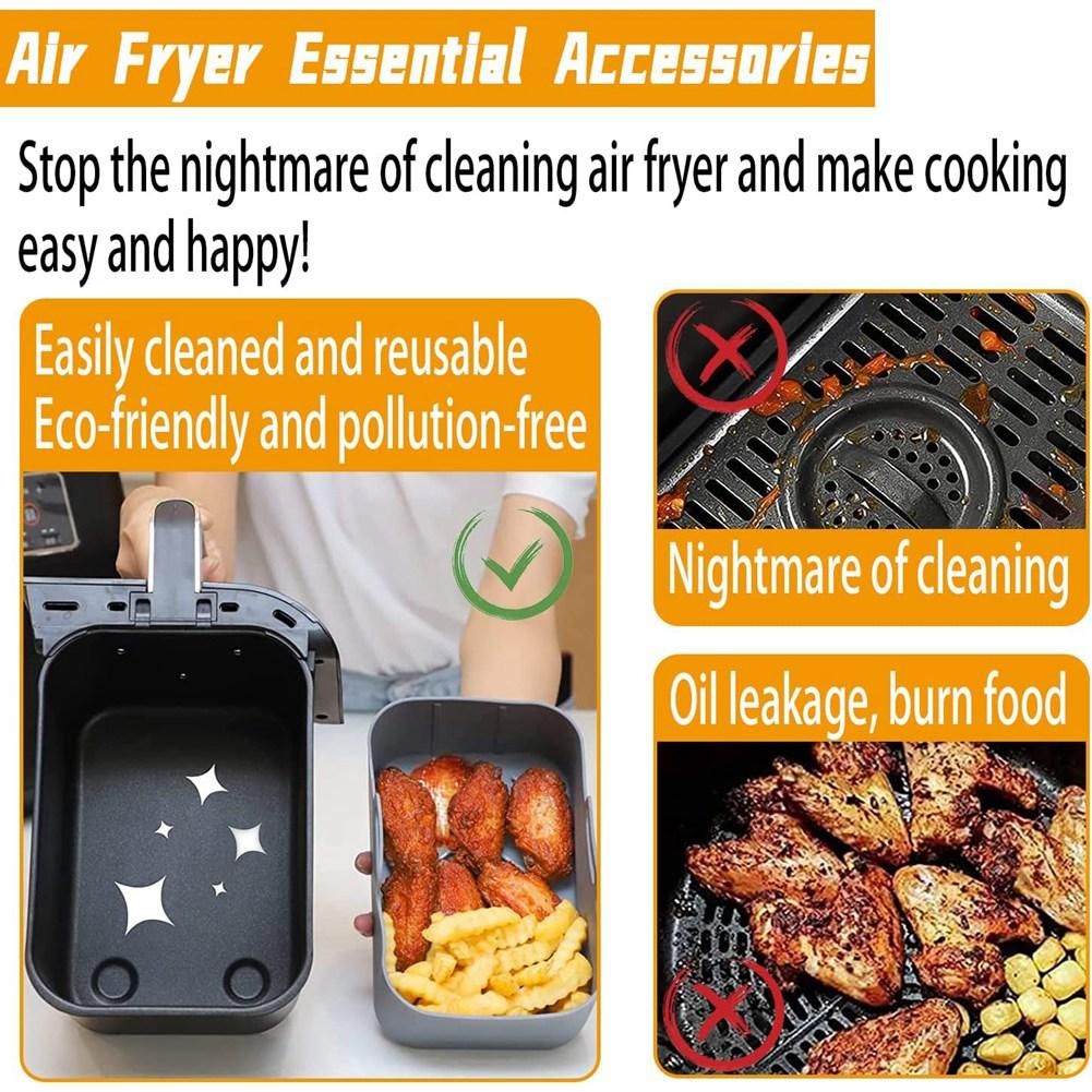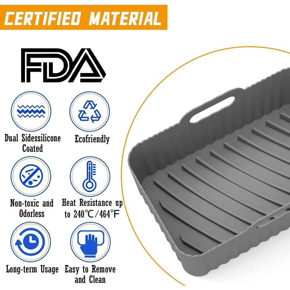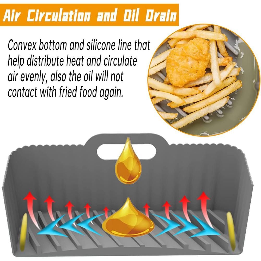 Air Circulation Design accessory is designed with dozens of soft silicone lines that help distribute heat and circulate air evenly Also the oil flows in to the deep groove around the edge of the bottom so the oil will not contact with fried food again So you can enjoy crispier and tastier foods