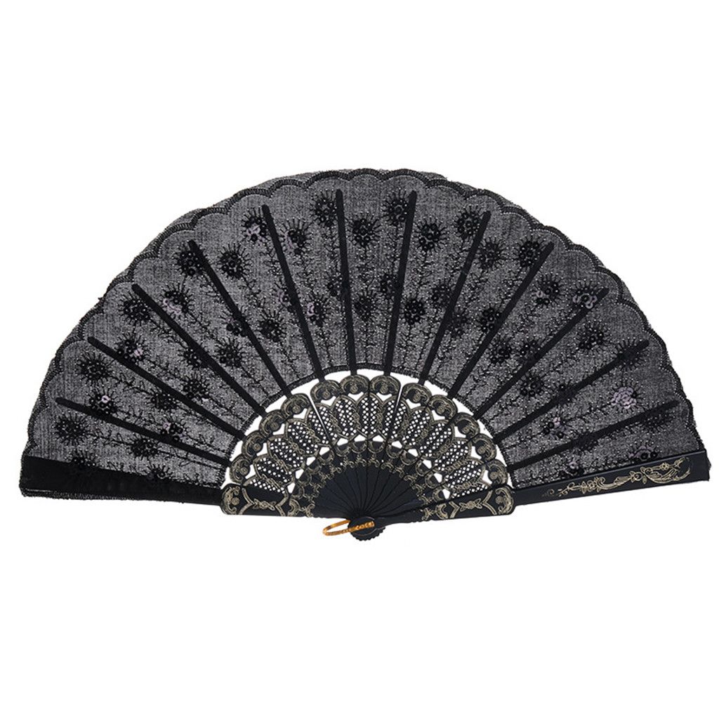 Buy Silk Wedding Wedding White Red Hand Lace Flower Held Black Ivory Fan Chinese Party Style Dance Blue Best Fan Pink Folding Lace in Nigeria