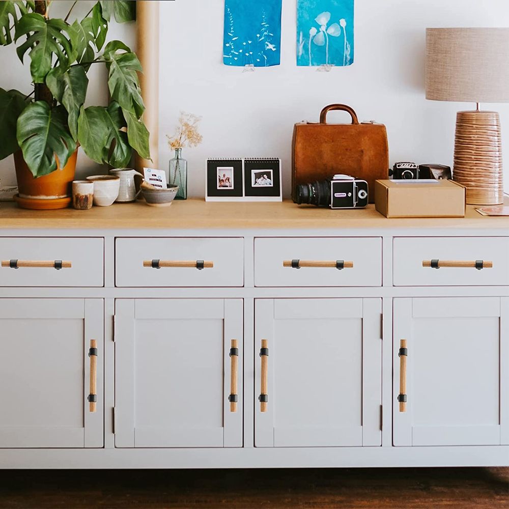 ▲ Pretty Design: The handle is made of high-quality solid wood, a simple line design, a smooth acurve, and increases the comfort of the hand, can withstand huge pulling forces, and add a beautiful decorative effect to other furniture.