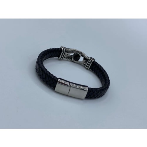 Buy Silver Black Leather Men's Bracelet in Nigeria