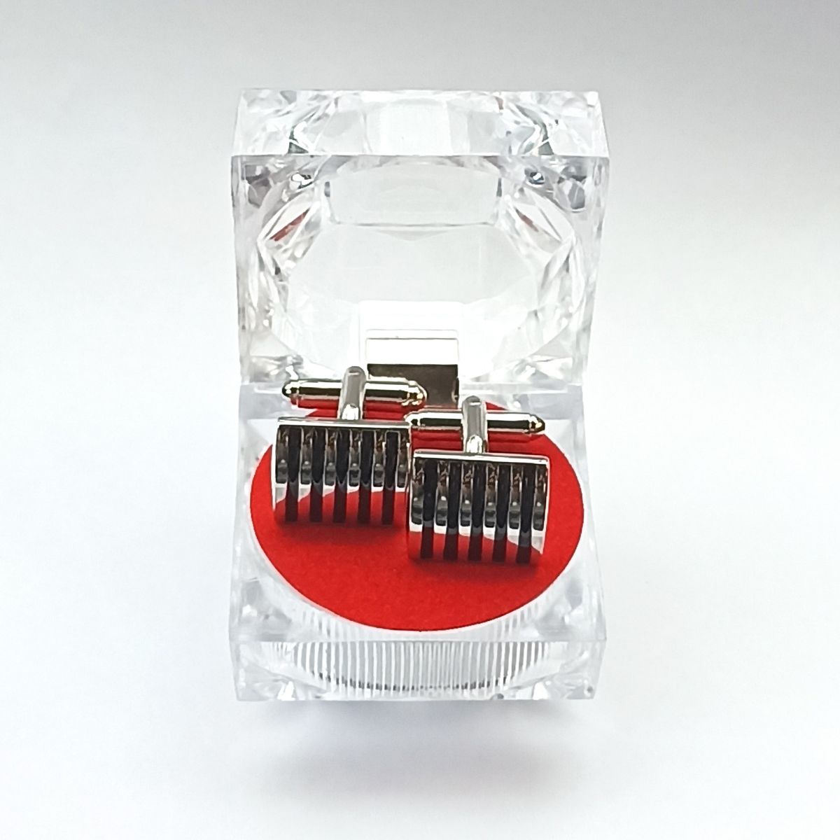 About cufflinks: Cufflinks have been a standard and classic jewelry gift for men for generations. It shows a man's taste and it is an important display part of the shirt. Silver & Black Plated Men Cufflinks Ridge Groove Pattern stands for elegant and noble and that matches with a luxurious life styles and make you become the focus in the celebrations or formal occasions.