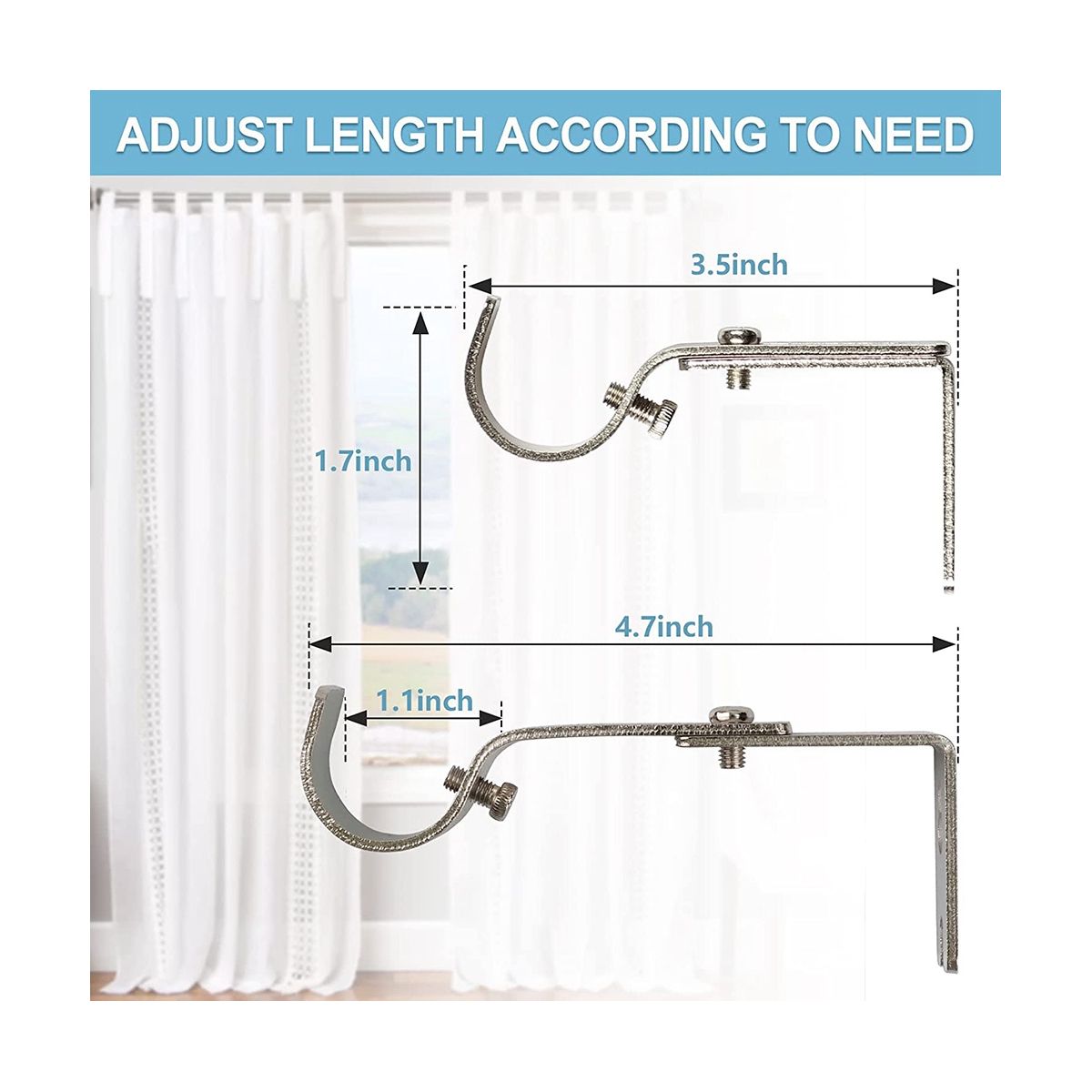 Universal Size&Adjust-:These curtain rod bracket fit for 1 inch diameter rod,can be extended from 3.5 to 4.7 inches out from the wall. Cast iron Holders-Thick iron Curtain bracket with rustproof paint, 2.5 mm thick, could bear enough weight to support your heavy drapes.