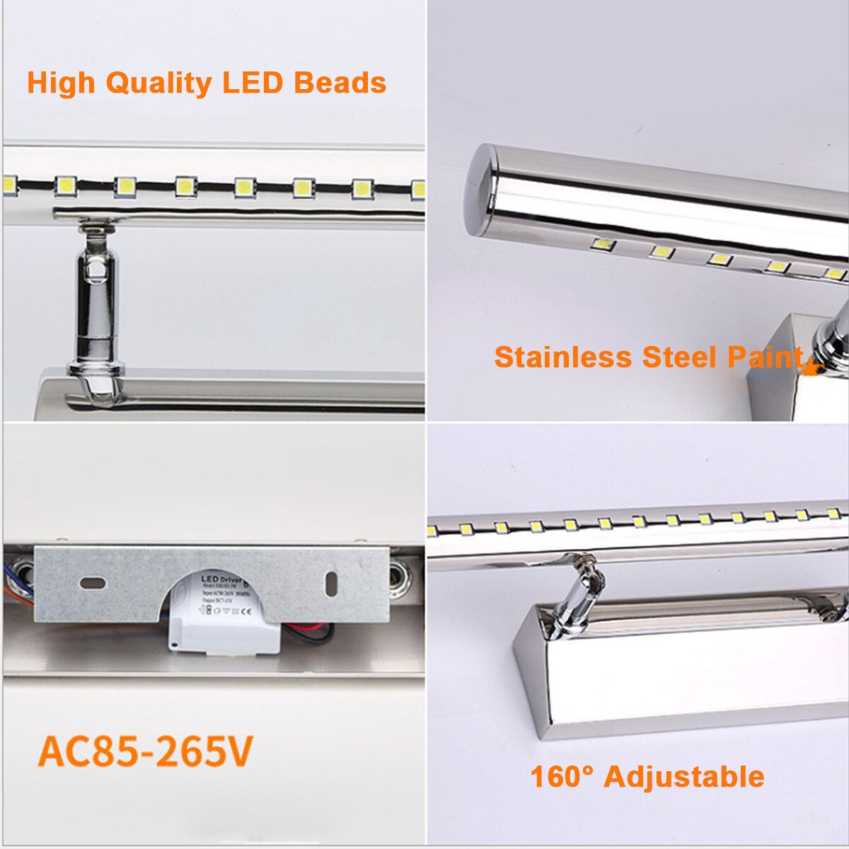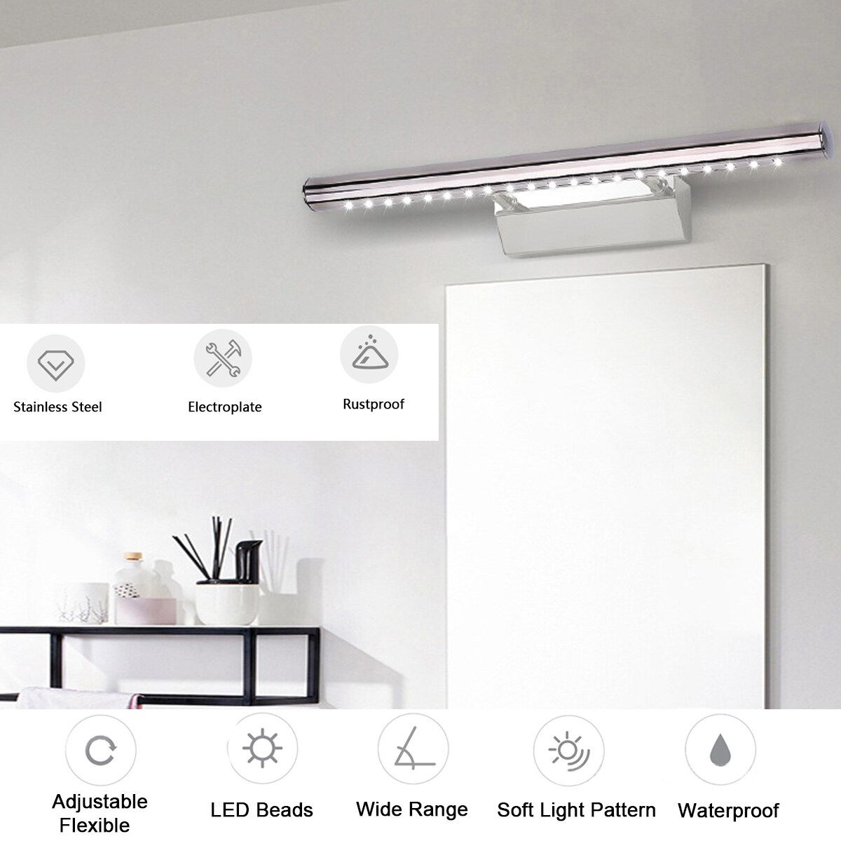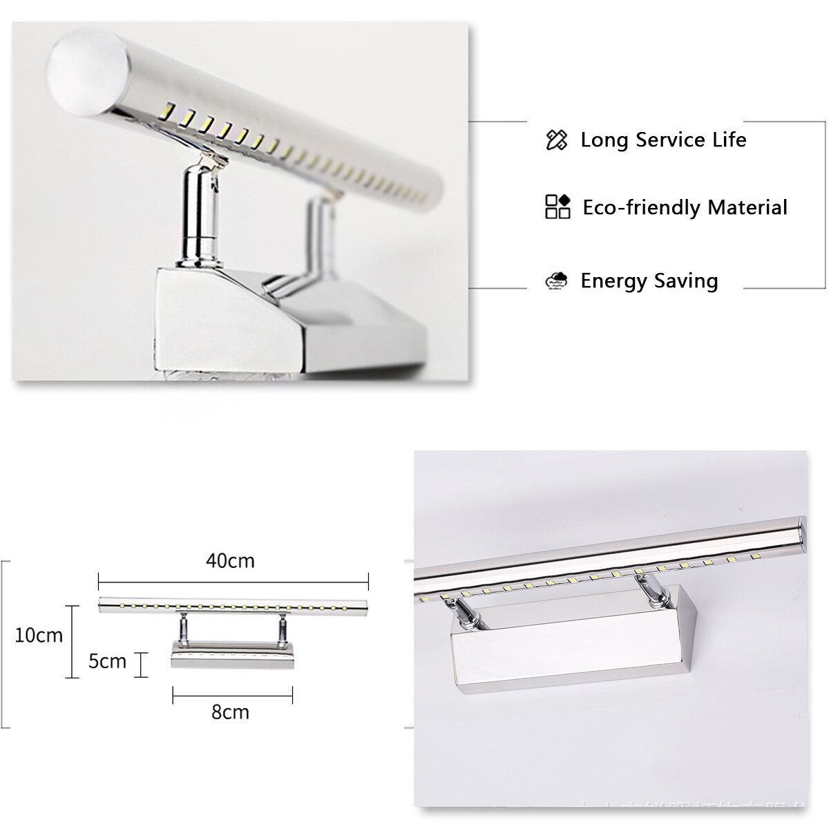 - Anti-fog: The body of the LED Mirror Front Light can resist the fog and water in the bathroom(mirror light is a auxiliary light,therefore cannot provide enough light to illuminate entire room)