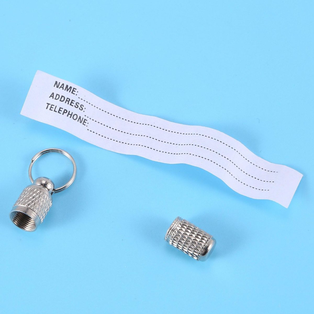 This tube contains your important emergency information. Bottom of tube unscrews and holds information sheet. Place it on pets and never worry about being lost again. All your contact information can be inside letting others know how to reach you.