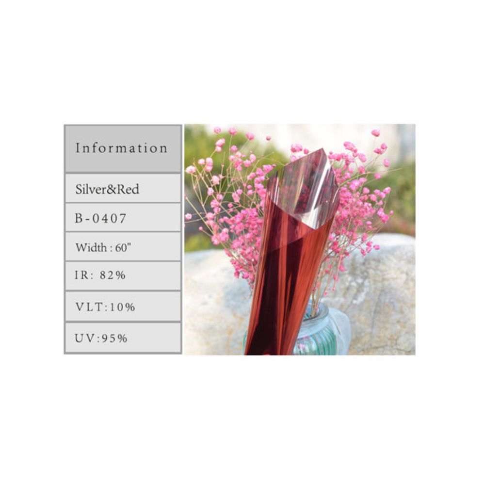 Product :Product Name: Building Window FilmMaterial: PETThickne: 2mil=0.05mmColor Name: Red&SilverSize: 0.5x1mFeature: Can be applied to the majority of flat surfacesNote: 1.Please allow 1-3mm error due to manual measurement. 2.The colors may have different as the difference display, pls understand.Package:1 x Solar Tint FilmHow to use:1.Tear protective film2.Prepare a spray bottle filled with water, add a little detergent entered, Sprayed on the surface of the gla and film3.The membrane attached to the gla, and then peel off that layer of transparent protective film attached to the mask on top of window film (to prevent mirror film being scratched)4.Use a ser shoot except air and exce water5.The film Collage with a spatula repair neatInstallation instructions:1.Before paste, must clean the window, don't residue any oil and impurities.2.Using gummed paper to install, then cut the film to a suitable size.3.Ar paste, the film should be standing about 7 hours under the condition of without external force to ensure the gummed paper can completely stick to window.