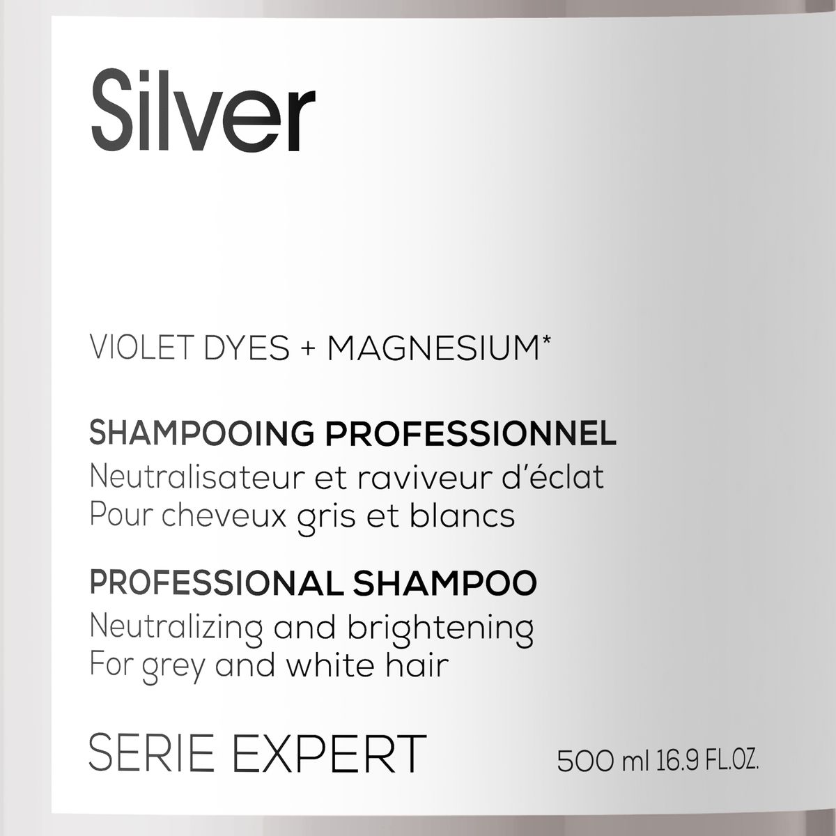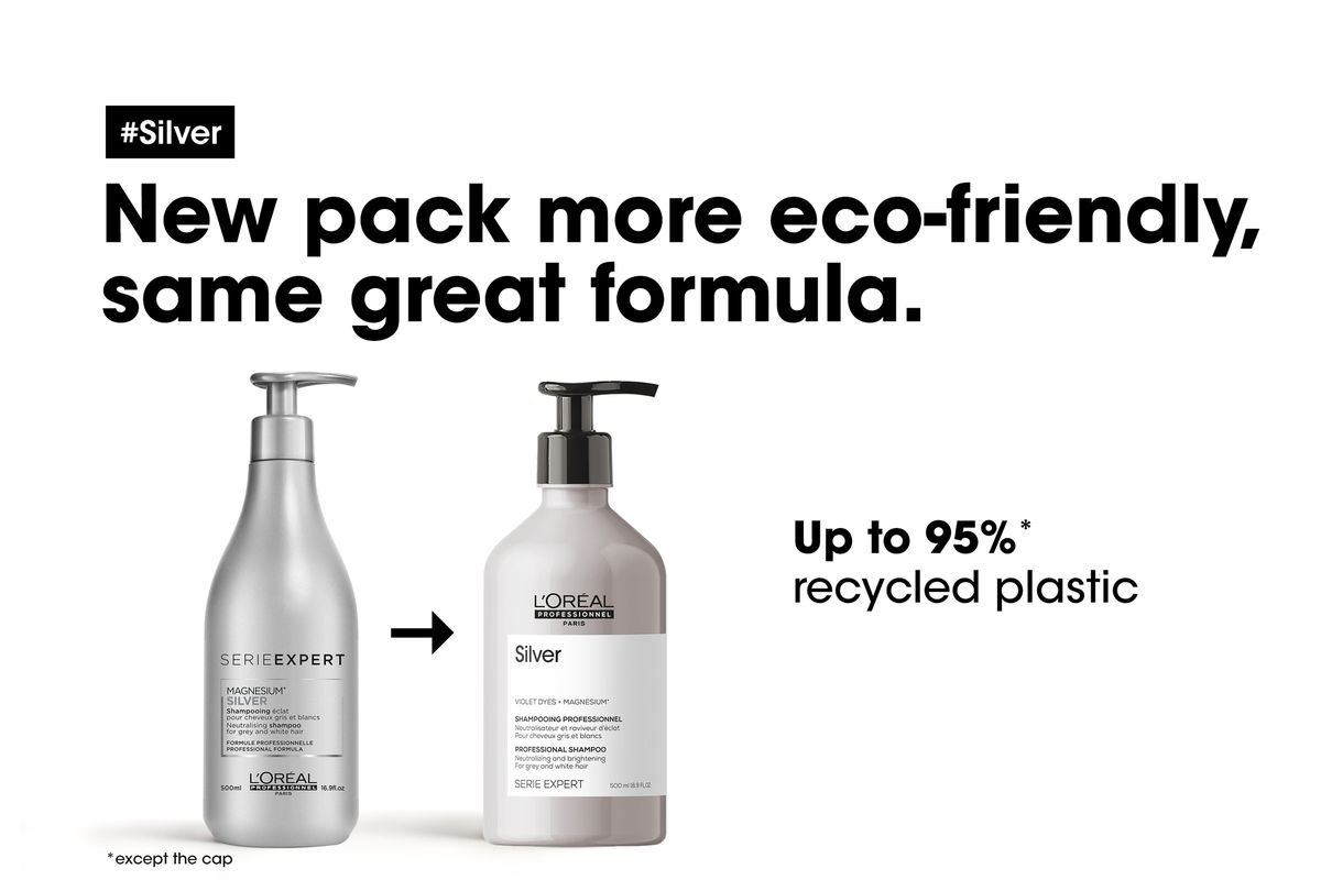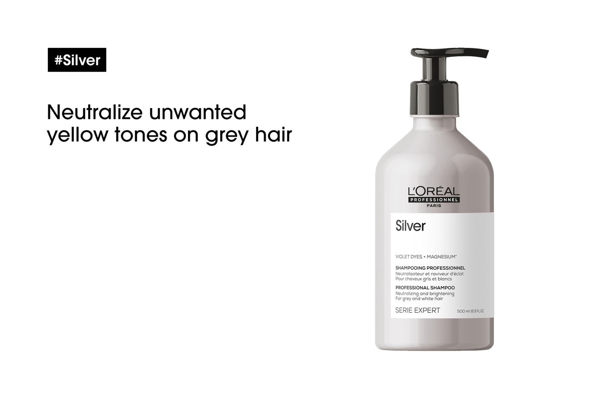 Showcase the beauty of grey, white or light blonde hair with L'Oreal Professionnel Silver Shampoo. The neutralising system, enriched with magnesium and anti-yellowing agents, counteracts unwanted brassy tones.