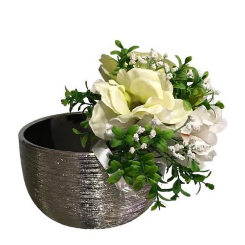 Buy Silver Textured Ceramic Flower Vase - Round Brushed Indoor Planters - 3inch in Nigeria