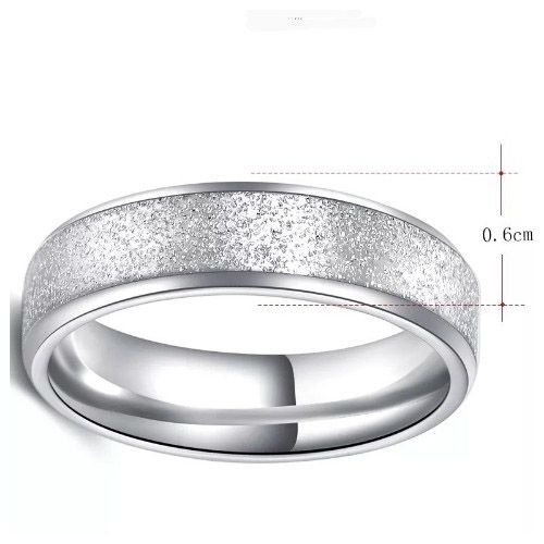 - 6mm Width Silver Tone Frosted Beveled Edge Stainless Wedding Ring for Men Women. Crafted from carefully selected materials and finished brilliantly, this elegant wedding ring gets you lots of admiration you have always wanted at all occasions. This astonishing wedding ring is for Men Women who desire to make a statement. The ring was designed for more comfortability and it has a great fit on the finger designated for wedding ring.