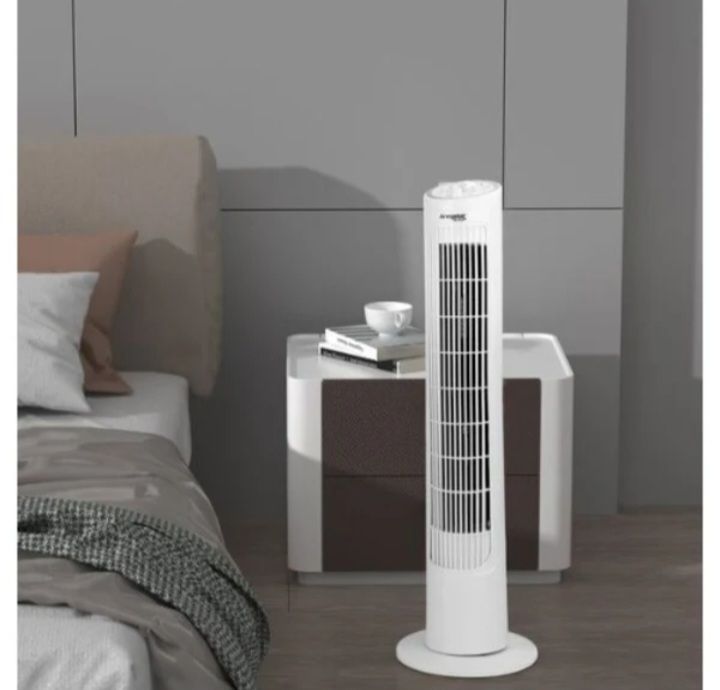 When the weather is warm, it can be hard to get comfortable and concentrate. With this high quality fan, you never have to worry about remaining at the right temperature again. The tower design of this product is perfect for cooling a large area of space, providing more range than a normal desk fan would. The fan also features a range of different settings, meaning that you can customise your use to help ensure that you're neither too hot nor too cold. The tower fan is ideal for large offices or home use. It will keep you cool during when the weather is warm. The adjustable settings on this high quality fan are perfect for finding the right temperature. The tower design of this product is perfect for cooling a large area of space, providing more range than a normal desk fan would. The fan stands 32 inches tall.