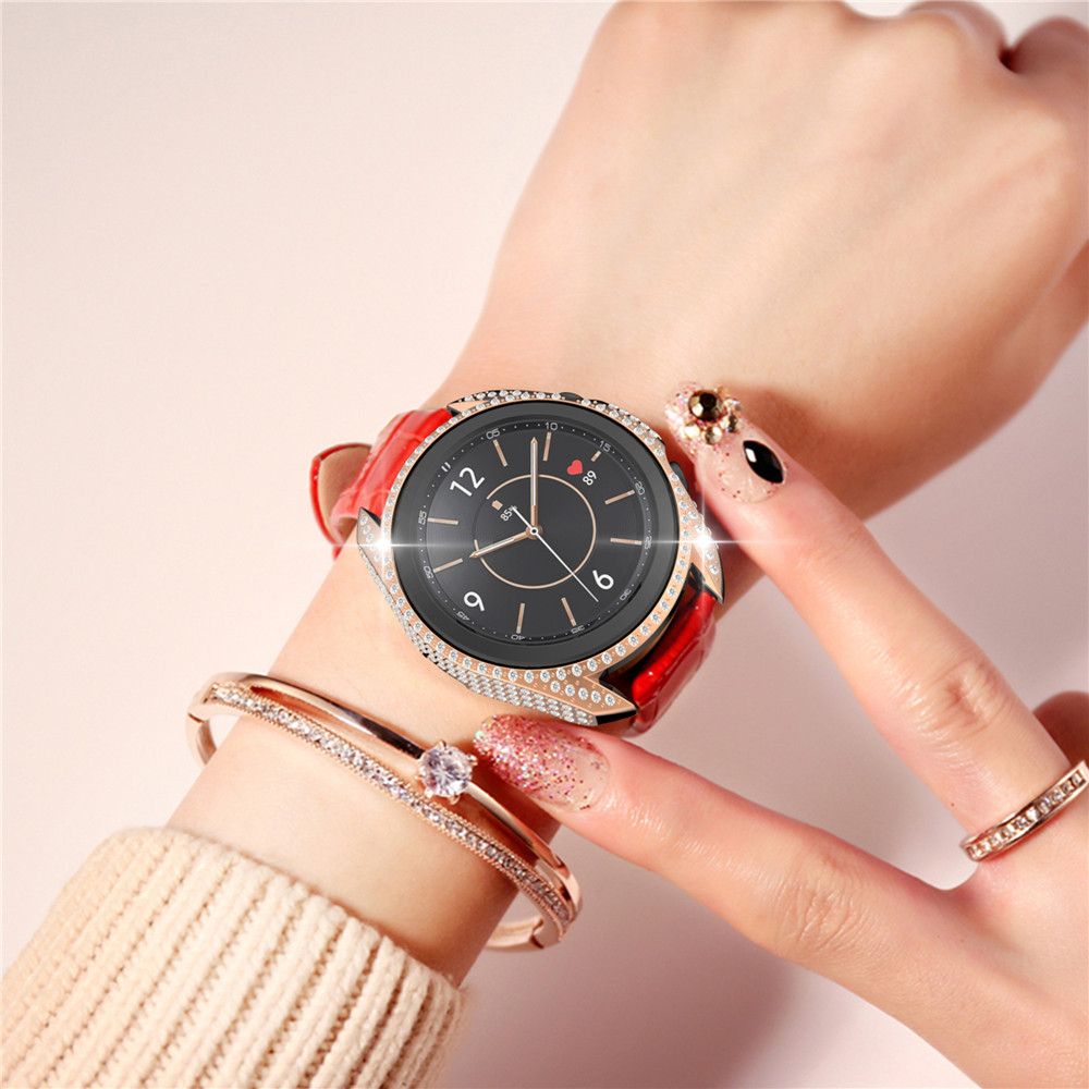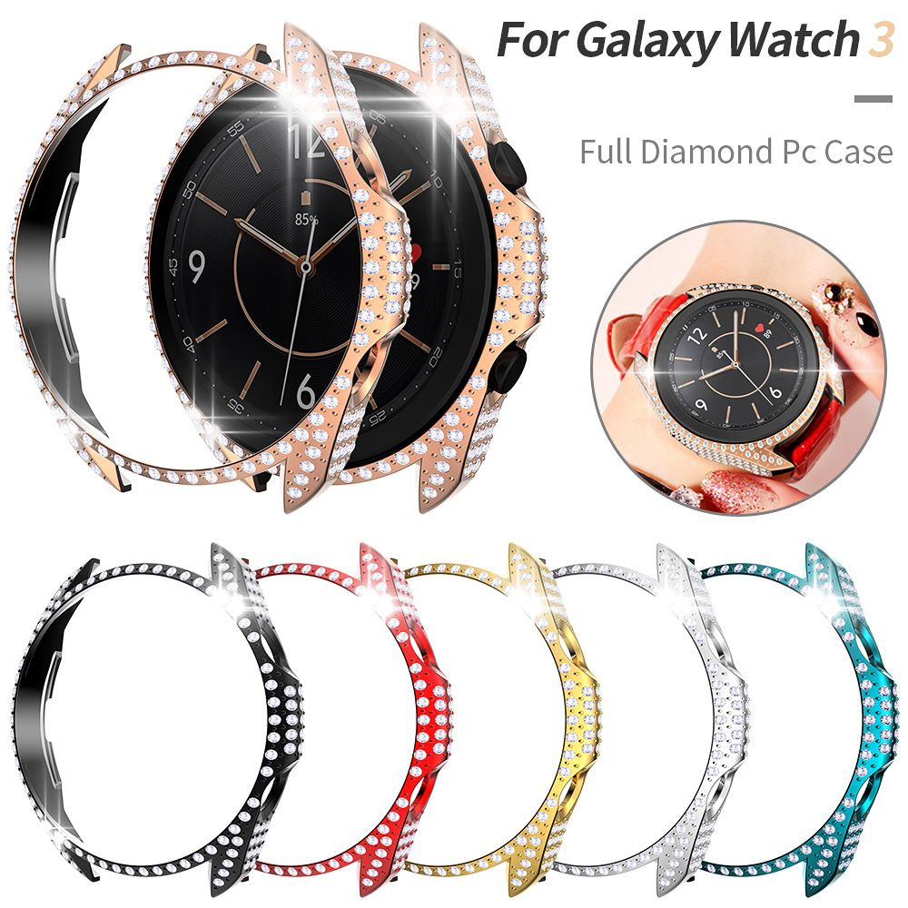 1X Luxury Full Diamond PC Case for Samsung Galaxy Watch 3 45mm 41mm Cover Women Protective Shell Watch3 Bumper Bling Hollow Frame
