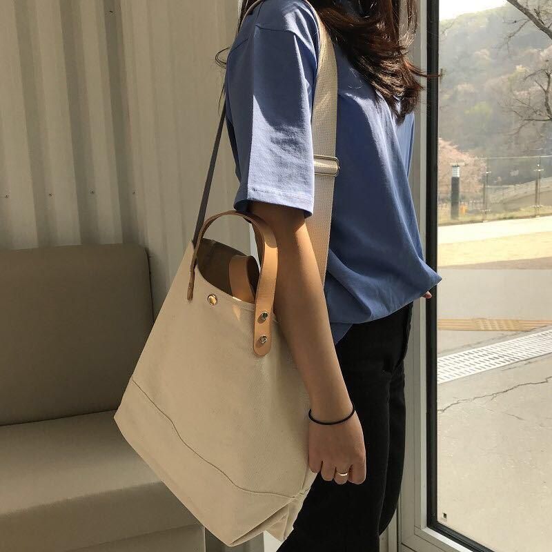 Buy Simple all-match large bag 2020 new ins canvas large-capacity handbag casual shoulder messenger bag white in Nigeria