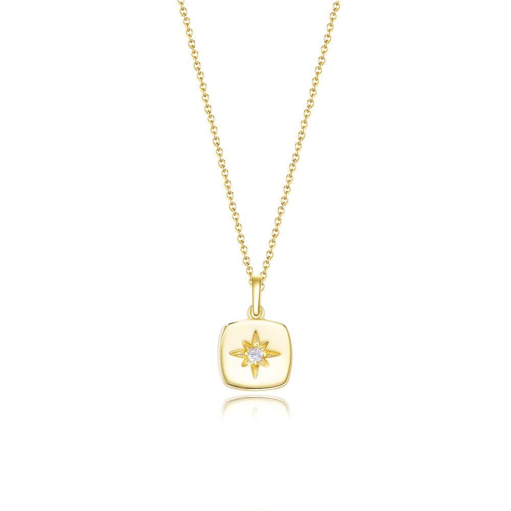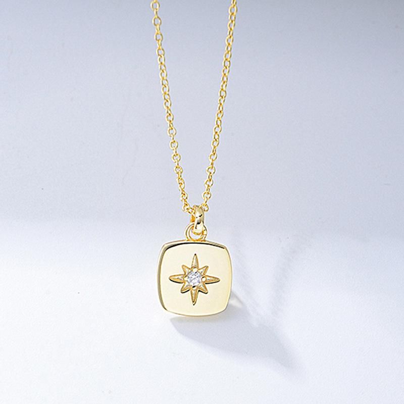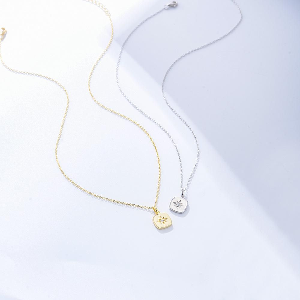 Buy Simple Minority All-Match Eight Awn Star Zircon Square Plate Pendant Sterling Silver Neckl in Nigeria
