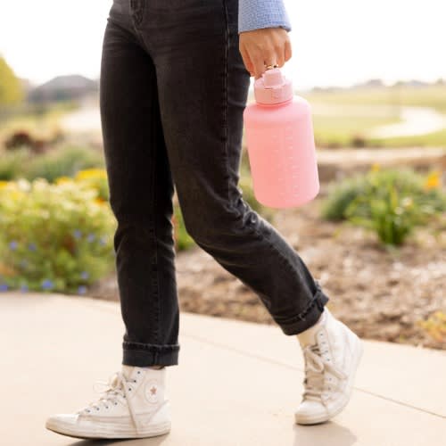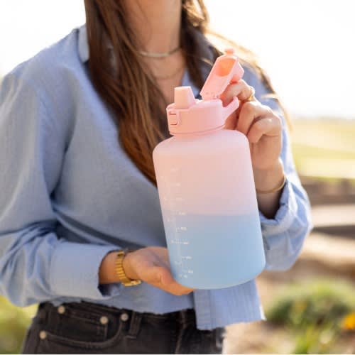 This 2L water bottle is special made with inspirational quote and time markers to remind you boost your daily water intake.Time and volume markers-very suitable for measuring your daily water consumption, it is visually pleasing to see you getting closer and closer to your goal and make you want to reach it sooner.