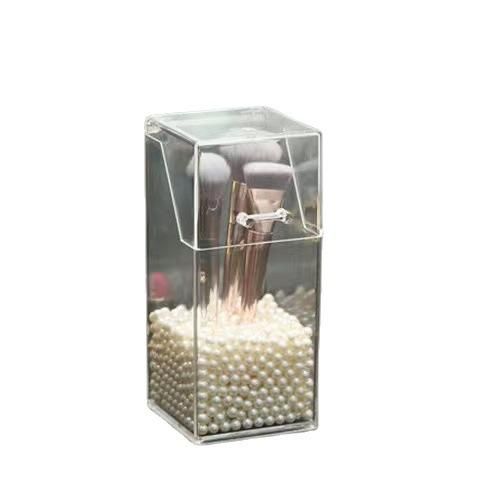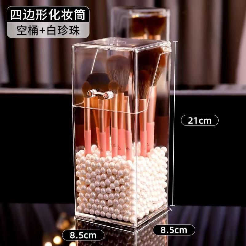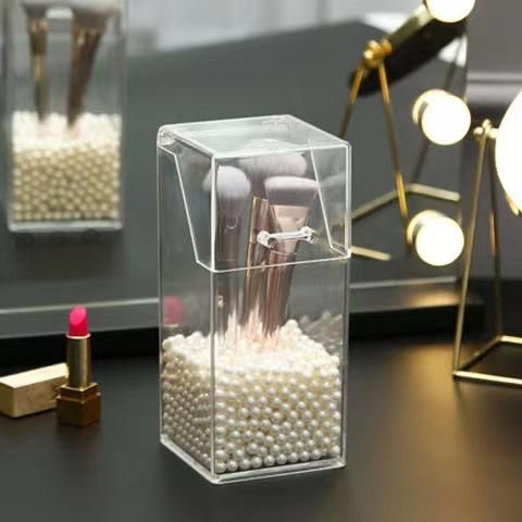 Buy Simple transparent acrylic square pen holder student desktop finishing storage box with cover makeup brush eyebrow pencil storage bucket bag of white pearls in Nigeria