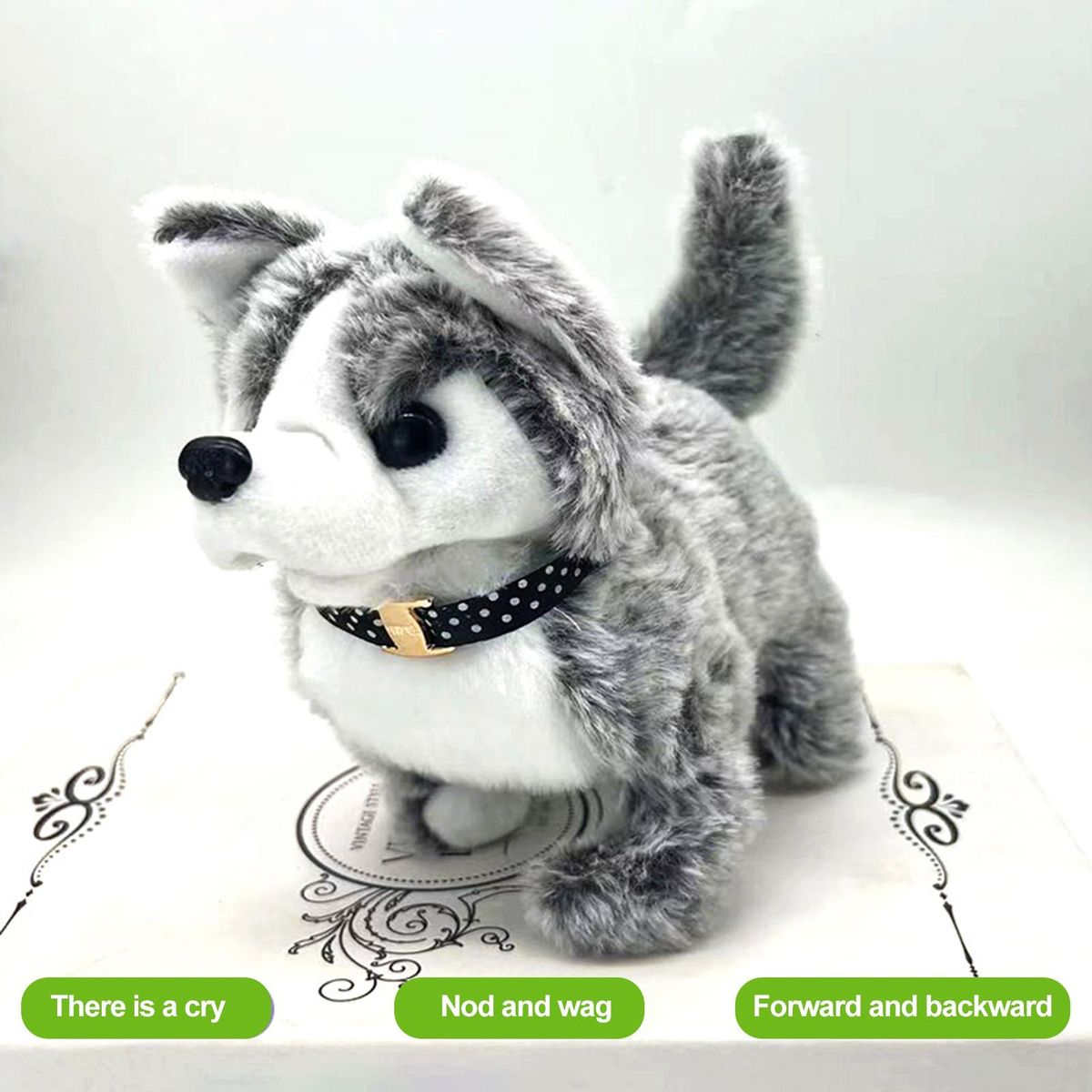 The simulated electric husky dog not only walks but also nods and wags its tail, captivating children's attention effortlessly. this interactive feature allows you to have more time and space for your own activities while your little ones are entertained. encourage your children to embrace responsibility as they care for this lovable pet, sparking their imagination and letting their minds roam freely. .