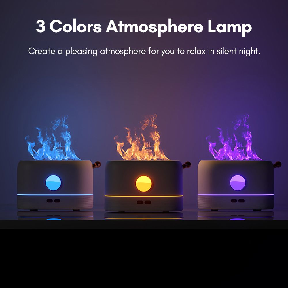 【Simulation Flame Effect amp; 3 Colors Atmosphere Lamp】High frequency ultrasonic atomization technology cooperates with LED to simulate natural flame effect, light up life inspiration; And the 3 colors atmosphere lamp will create a pleasing atmosphere for you to relax in silent night.
