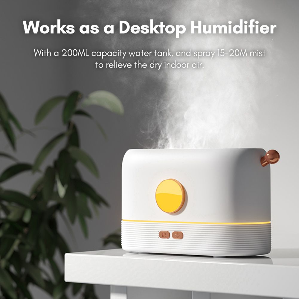 【2-in-1 Mist Humidifier amp; Aromatherapy Diffuser】With a 200ML capacity water tank, the machine can spray 15-20M mist to relieve the dry indoor air as a humidifier; and you can add some fragrance into the machine. Humidification and aromatherapy are combined to humidify and purify the air.