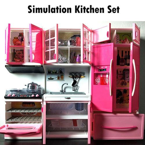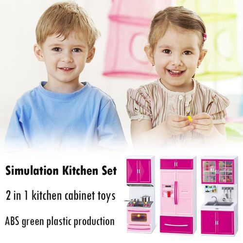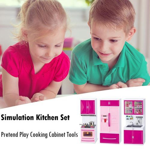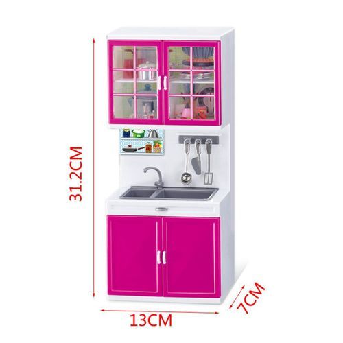 Simulation Kitchen Cabinets Set Toys Girls Dollhouse PlaysetThree-in-one kitchen cabinet toys, lighting and sound effects in the electric oven.