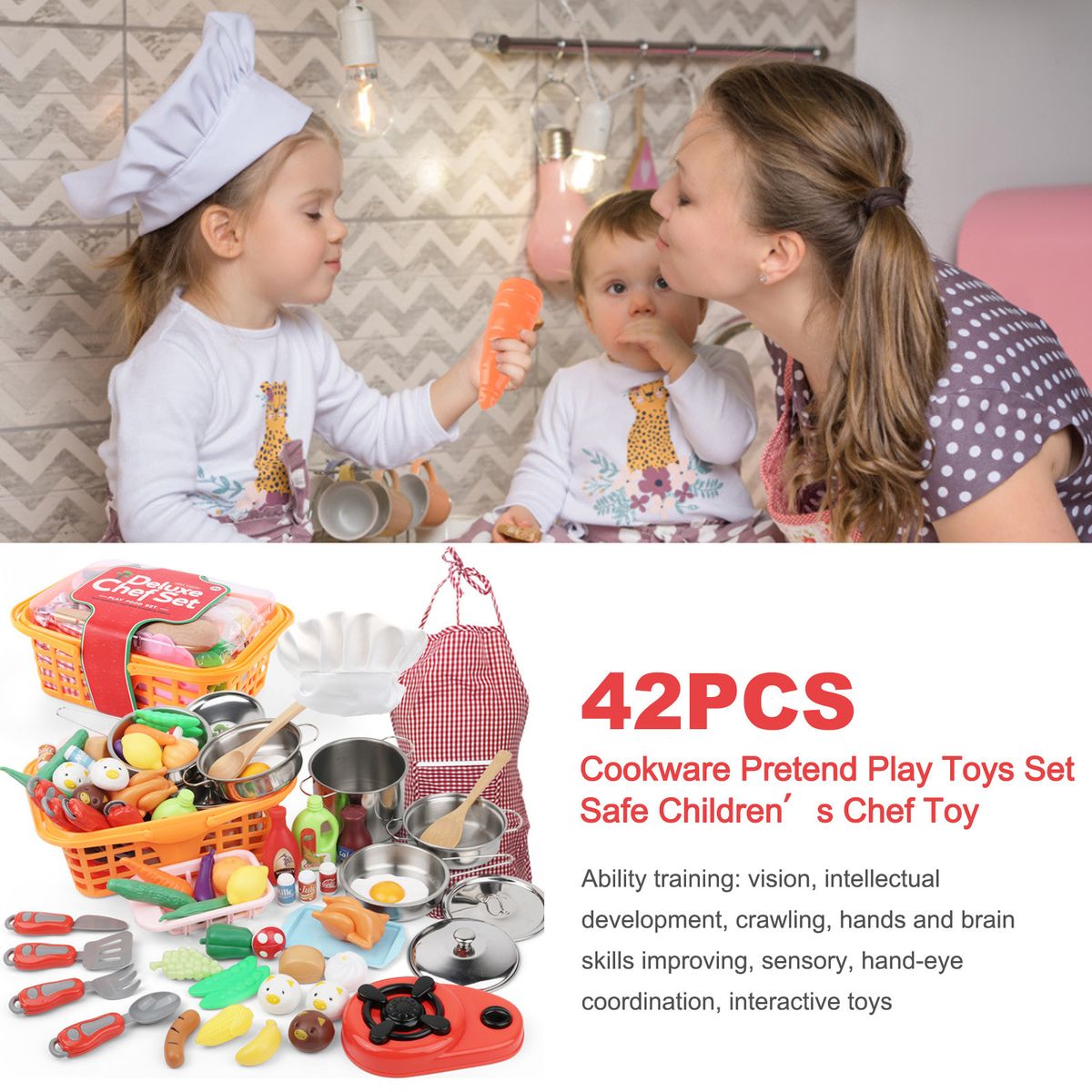 quality toy includes pots, pans, cutters, cutlery, aprons, chef hats, stoves, and vegetable and fruit toys. This cooking toy set contains everything children need to get their toy for kitchen and enjoy endless cooking fun.