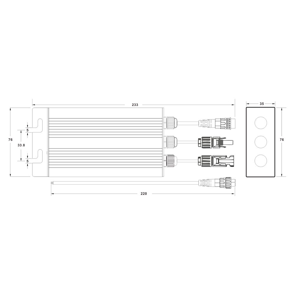 A solar micro-inverter is a device that converts solar panels from direct current to alternating current with a small size and is commonly used in small solar systems. A microinverter connected to a solar module can achieve a maximum output of 260W/300W/350W (according to your selection). High efficient conversion, with an integrated efficiency of up to 95%.