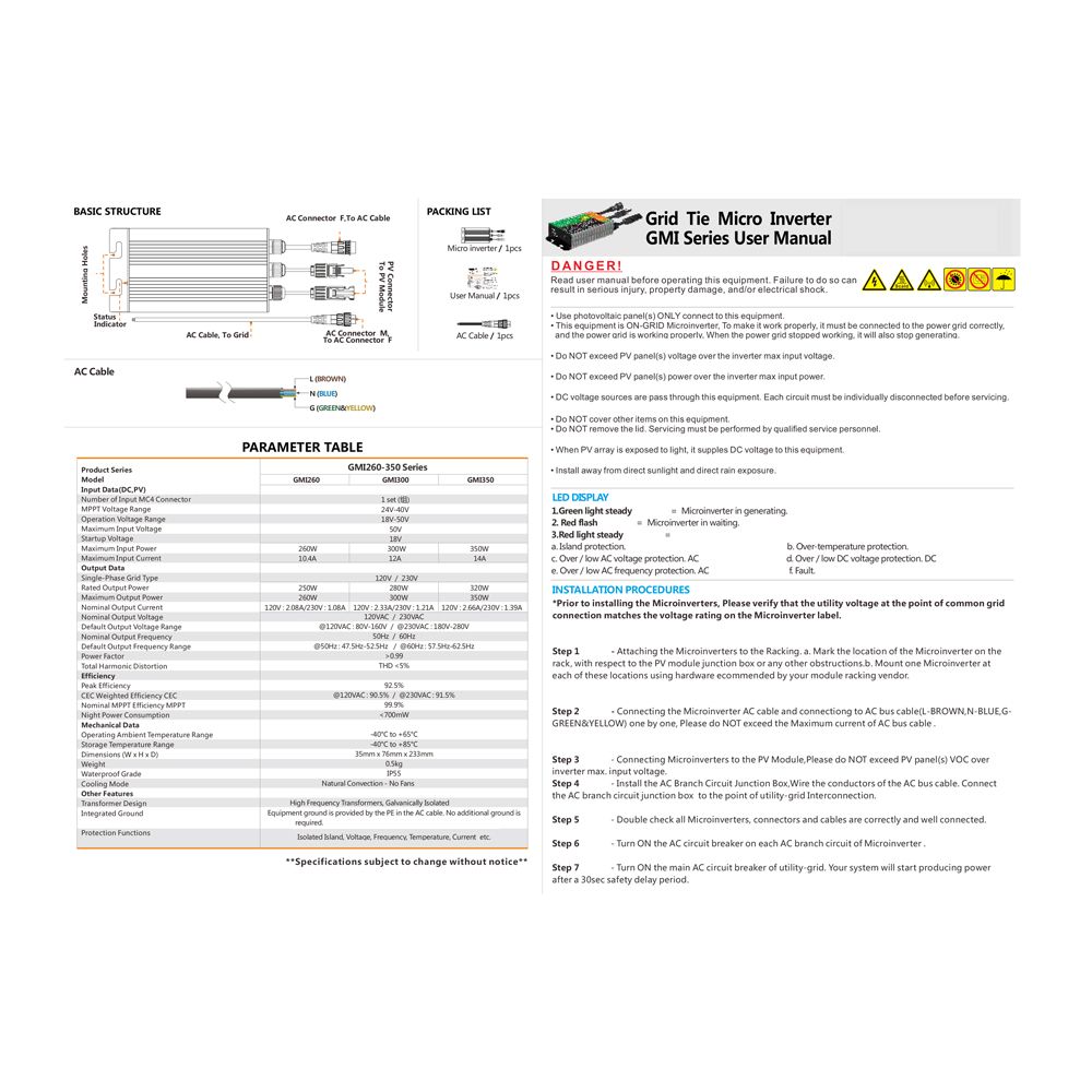 Maximum Input : 260W(GMI260); 300W(GMI300); 350W(GMI350)