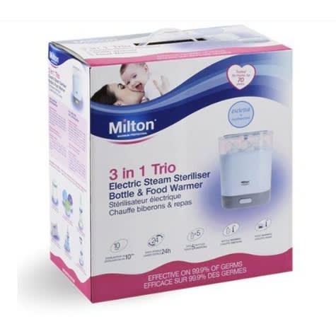 6 baby feeding bottles with newborn silicone teats1 weeks supply of sterilizing tabletsUnique teat tray Use baby sterilizing Tablets or liquids in the sterilizing unit according to the instructions, in order to sterilize your baby's feeding equipment