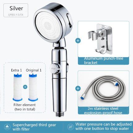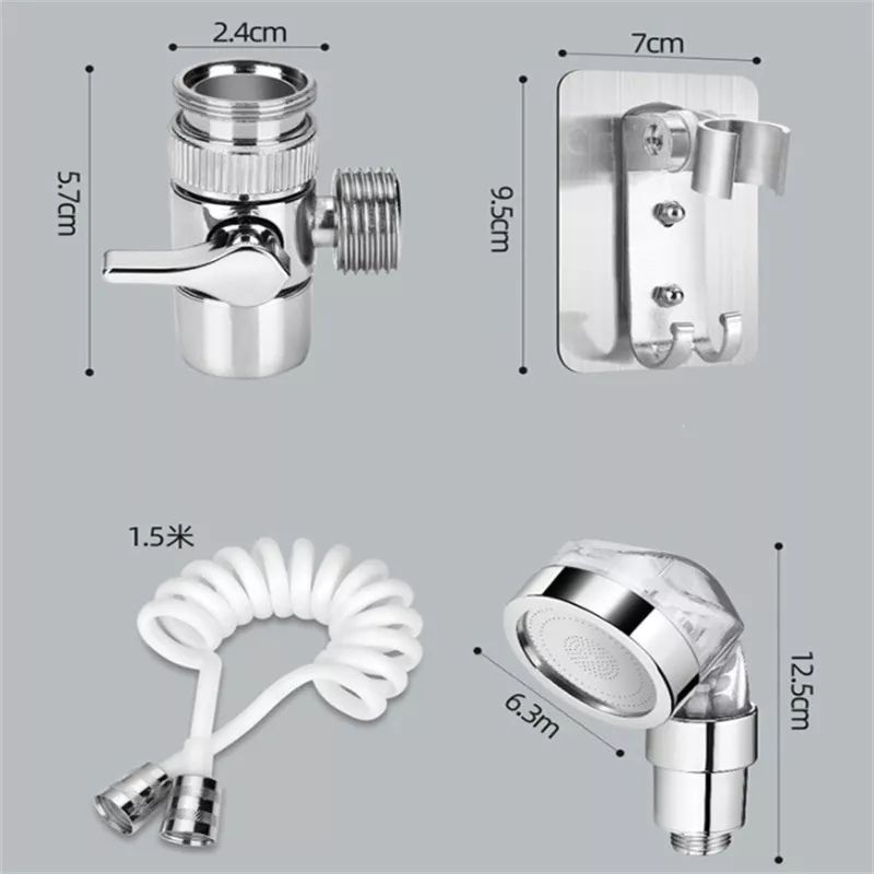 1. Double outlets to meet your different water needs2. Three-speed speed regulation, one-key switch, multiple water outlets methods, make your life better.3. One key water stop button, more convenient to use.4. We provide free brackets available, no need to drill, easy to install.5. with retractable shower hose, you can adjust the length.