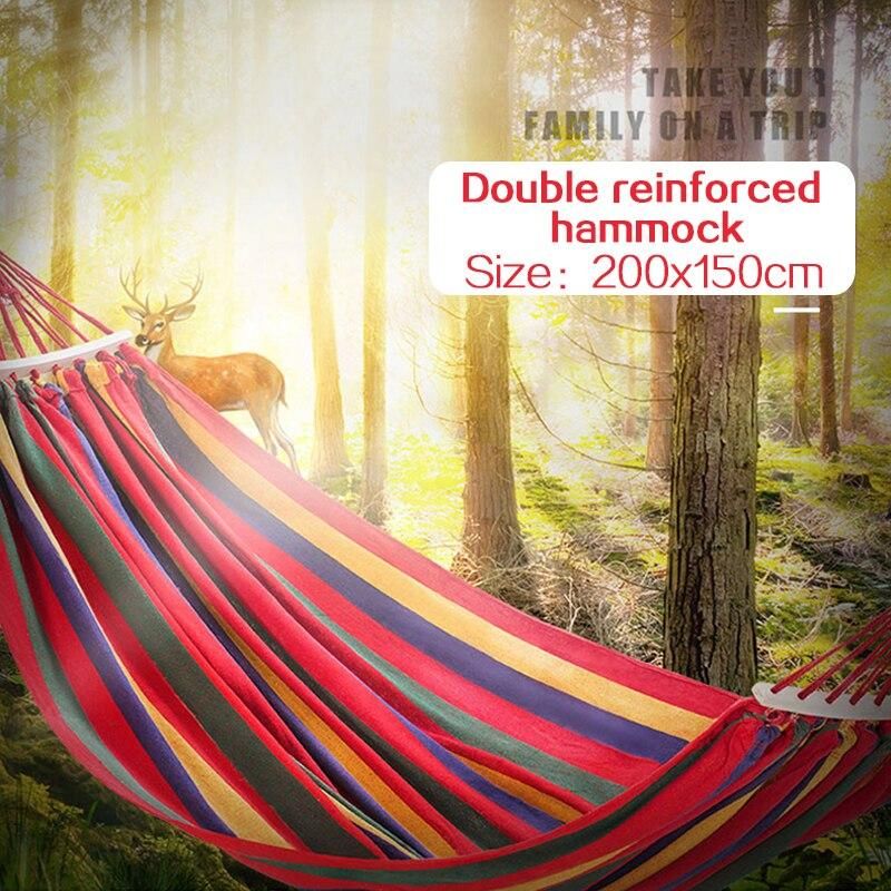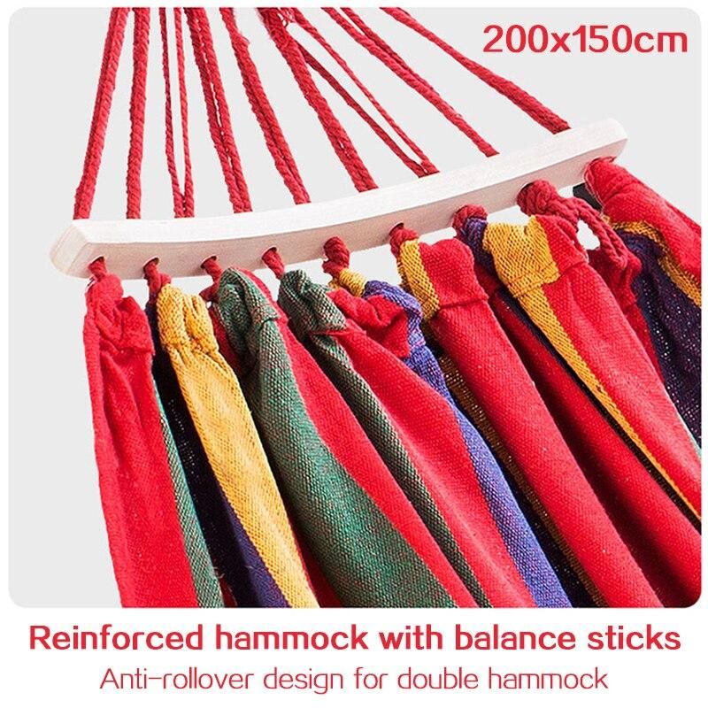 Single double hammock outdoor anti-rollover canvas hammock swing mesh wooden stick double thickening 200X150CM
