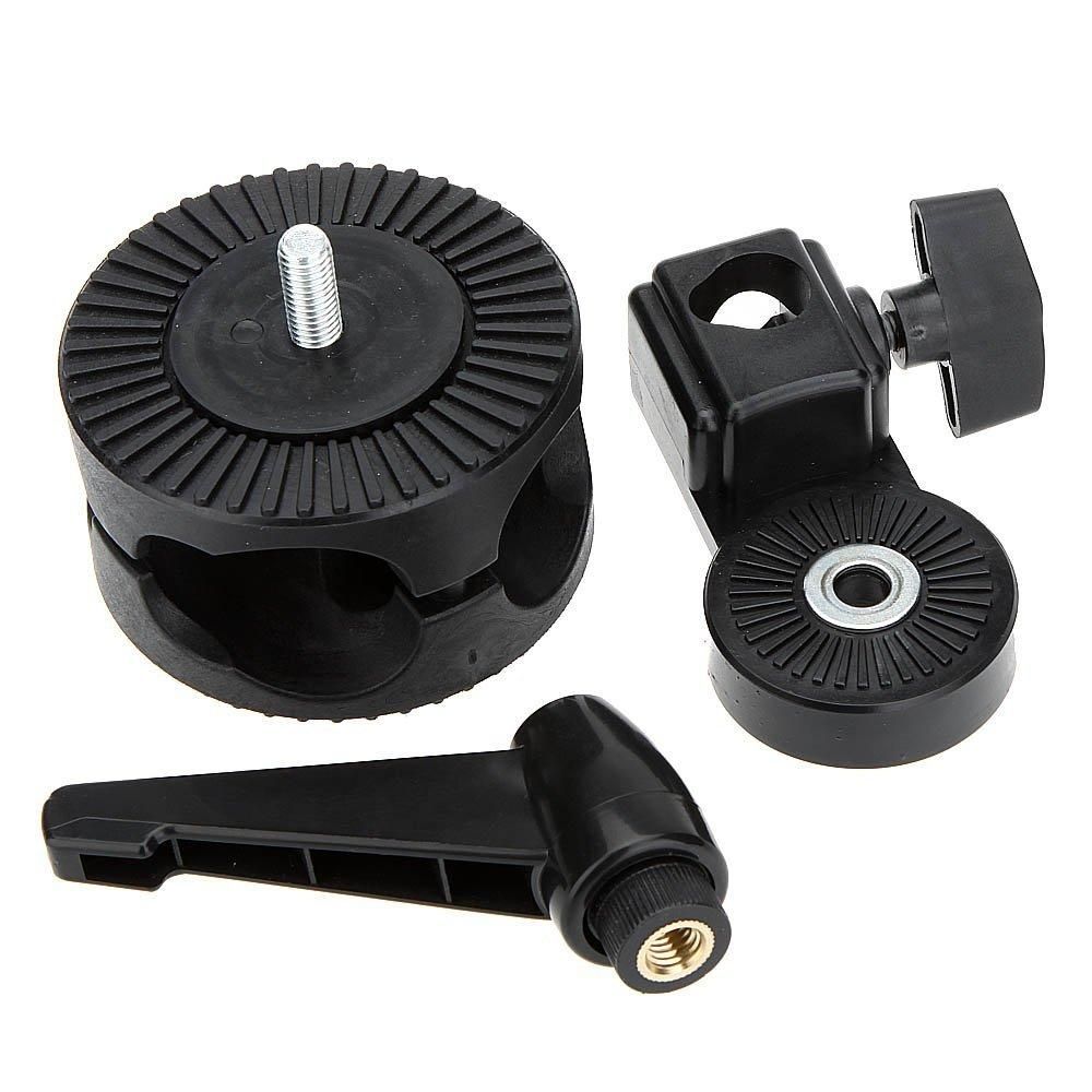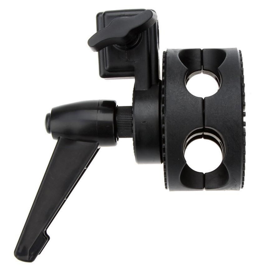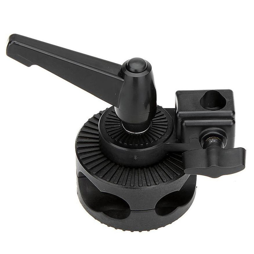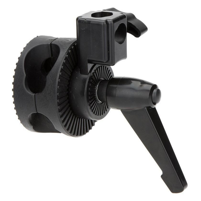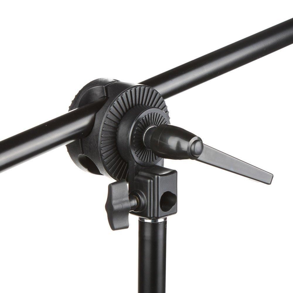 The single swiveling head bracket clamp can slide onto your light stand and hold large equipment, such as boom arms, in place.