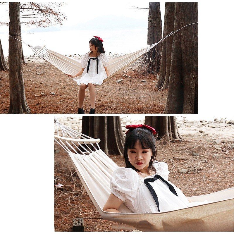 This swing bed makes it super relaxing for all people. Perfect spot for napping,reading,hiking,etc.