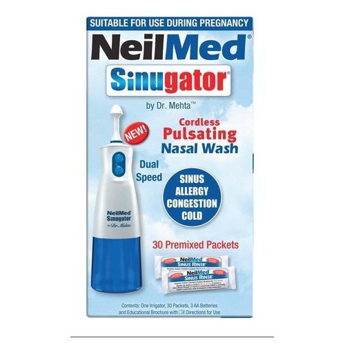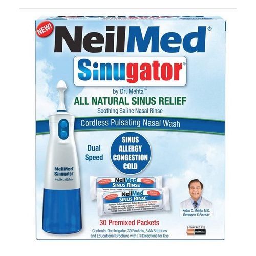 NeilMed Sinugator - Cordless Pulsating Nasal Wash with 30 Sinus Rinse Premixed Packets of USP Grade Sodium Chloride & Sodium Bicarbonate
