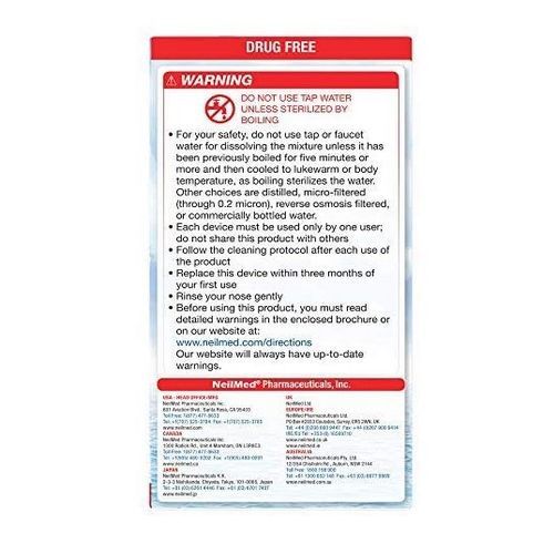 - Step 3: Standing in front of a sink, bend forward to your comfort level and tilt your head down. Keeping your mouth open, without holding your breath, place the tip snugly against your right nasal passage or nostril. Press the blue power button until the solution starts draining from your left nasal passage. Depending on the head position, residual solution may drain from your mouth. We suggest to spit it out, however, there is no harm, if accidentally swallowed. For a proper rinse, keep pressing the power button until at least 1/4 to 1/2 (60 mL to 120 mL or 2 to 4 fl oz) of the solution is used for one nostril. Stop pressing the power button if you feel any discomfort, pain or pressure during the irrigation.