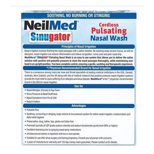 NeilMed Sinugator - Cordless Pulsating Nasal Wash with 30 Sinus Rinse Premixed Packets of USP Grade Sodium Chloride & Sodium Bicarbonate