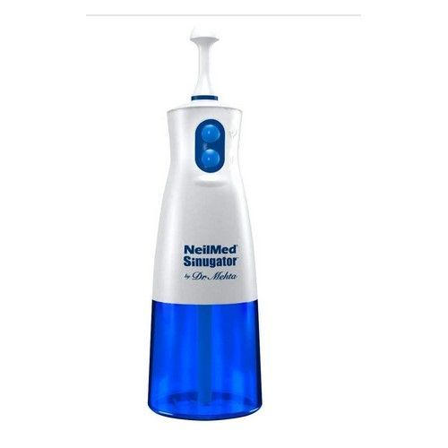 - Step 2: Cut the SINUS RINSE mixture packet at the corner and pour its contents into the blue reservoir of the Sinugator. Place the white motor unit over the blue reservoir and rotate until locked. Swirl the unit thoroughly to dissolve the mixture.