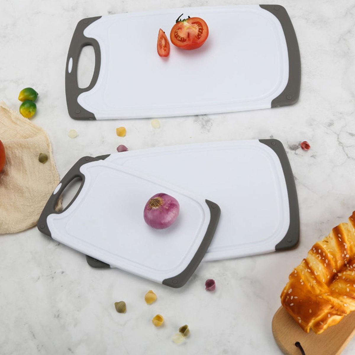 Our versatile and practical chopping board set, perfect for all your culinary needs! made of high-quality pp plastic, our cutting boards are bpa-free and offer a modern alternative to traditional wood or bamboo boards. say goodbye to moldy surfaces as our cutting boards are specially designed to resist mold during use.