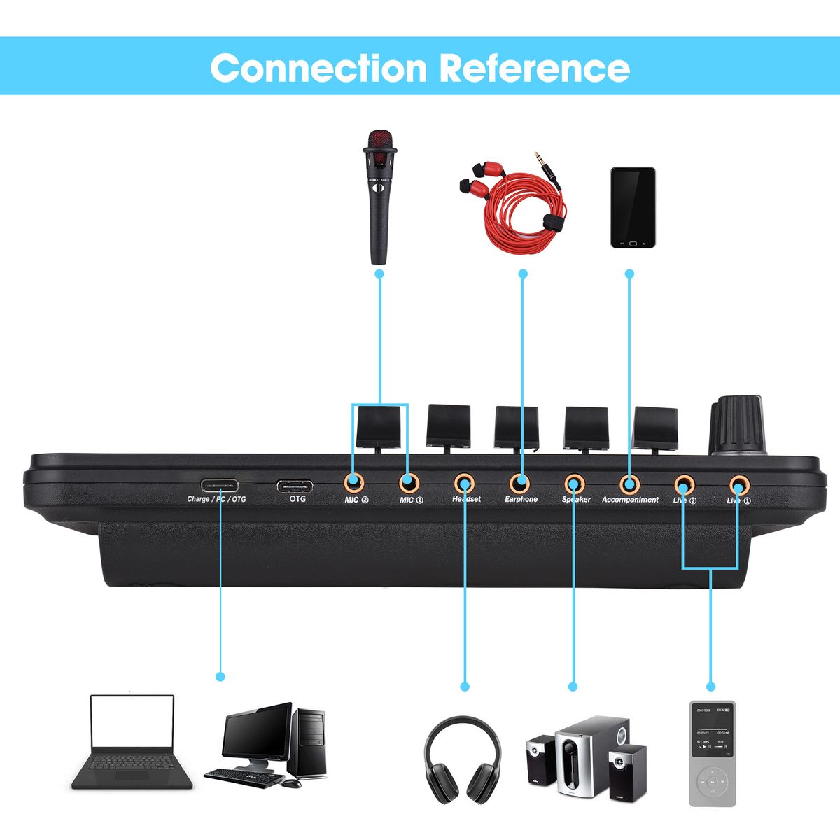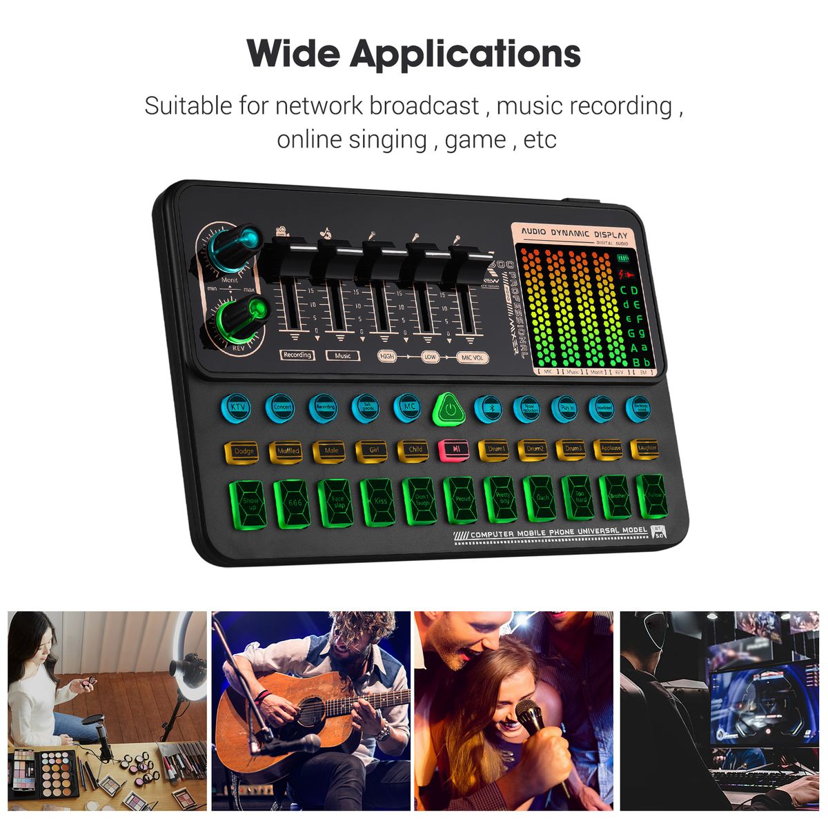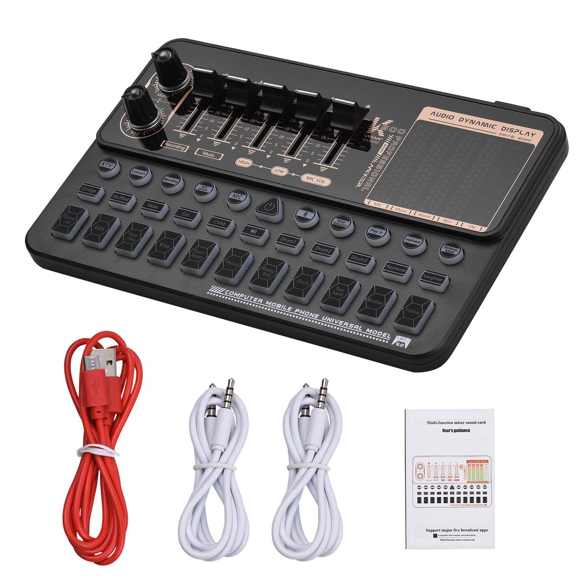 Portable Live Sound Card: Adopts high-quality digital processor and noise reduction chips, features excellent sound quality, suitable for live streaming, music recording, online singing, game, etc.