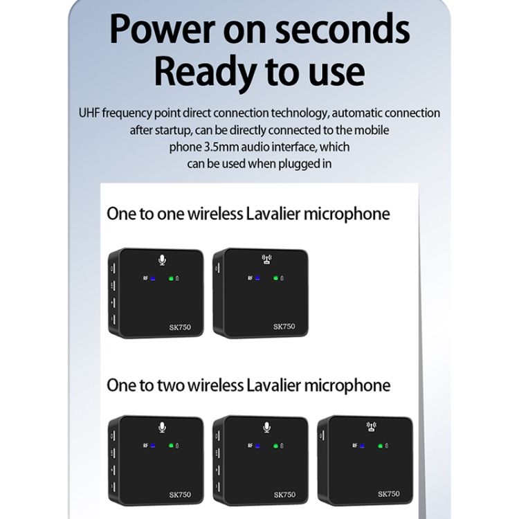 6. Built-in 3.7V lithium polymer battery, the Transmitt er has a battery life of 3 hours, and the receiver has a battery life of 6 hours
