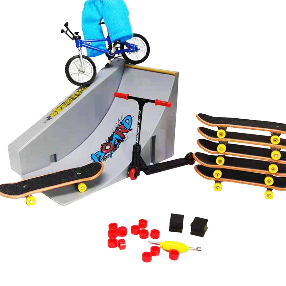 Optional:CDH-7: 2 PCS Skateboard Ramp1 PC Alloy Scooter1 PC Pants1 PC Bicycle6 PCS SkateboardsDisassembly Accessories10 PCS Rubber PadsCDH-8: 10 PCS Skateboard Ramp Props Combination 1 PC Alloy Scooter1 Pair Skates (Yellow and Green Random)1 PC Pants2 PCS Skateboard (Yellow, Green)15 PCS Assembly and Disassembly Accessories20 PCS Rubber Pad 20 PointsCDH-9: 10 PCS Skateboard Ramp Props Combination1 PC (Black)2 PCS Scooters (Gold, )1 PC Pants (Yellow)2 PCS Skateboard (Yellow, Green)4 PCS Disassembly AccessoriesCDH-10: 3 PCS Skateboard Ramp1 PC Scooter (Gold Head)1 PC Alloy Scooter (Black)1 PC Pants (Blue)1 PC (Blue)1 PC SkateboardDisassembly Accessories20 PCS Rubber Pads