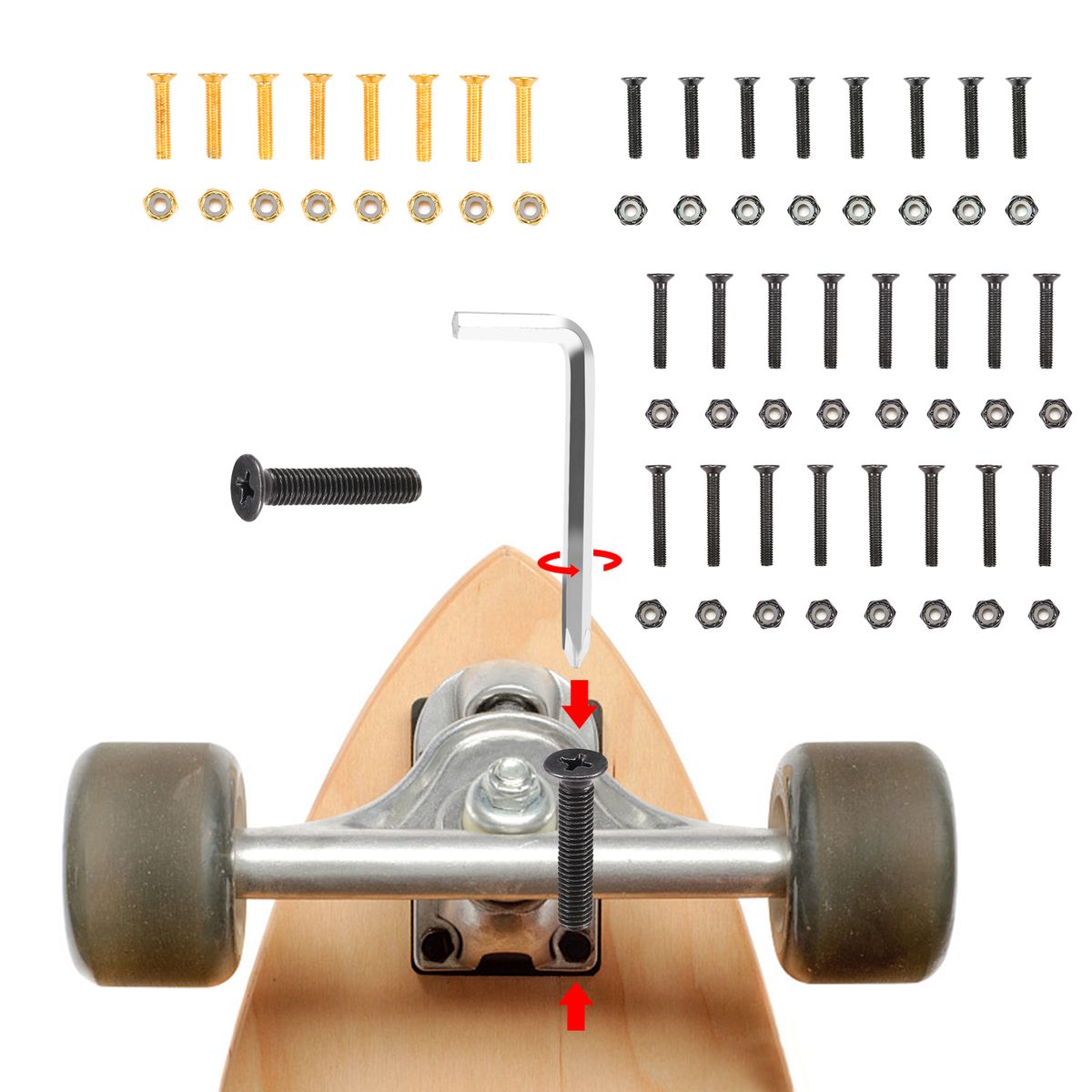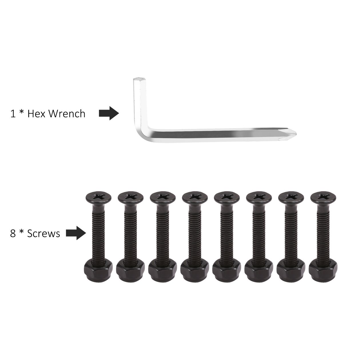 Come with 8pcs bolts, 8pcs nuts and a hex key wrench with cross screwdriver.