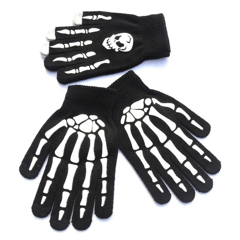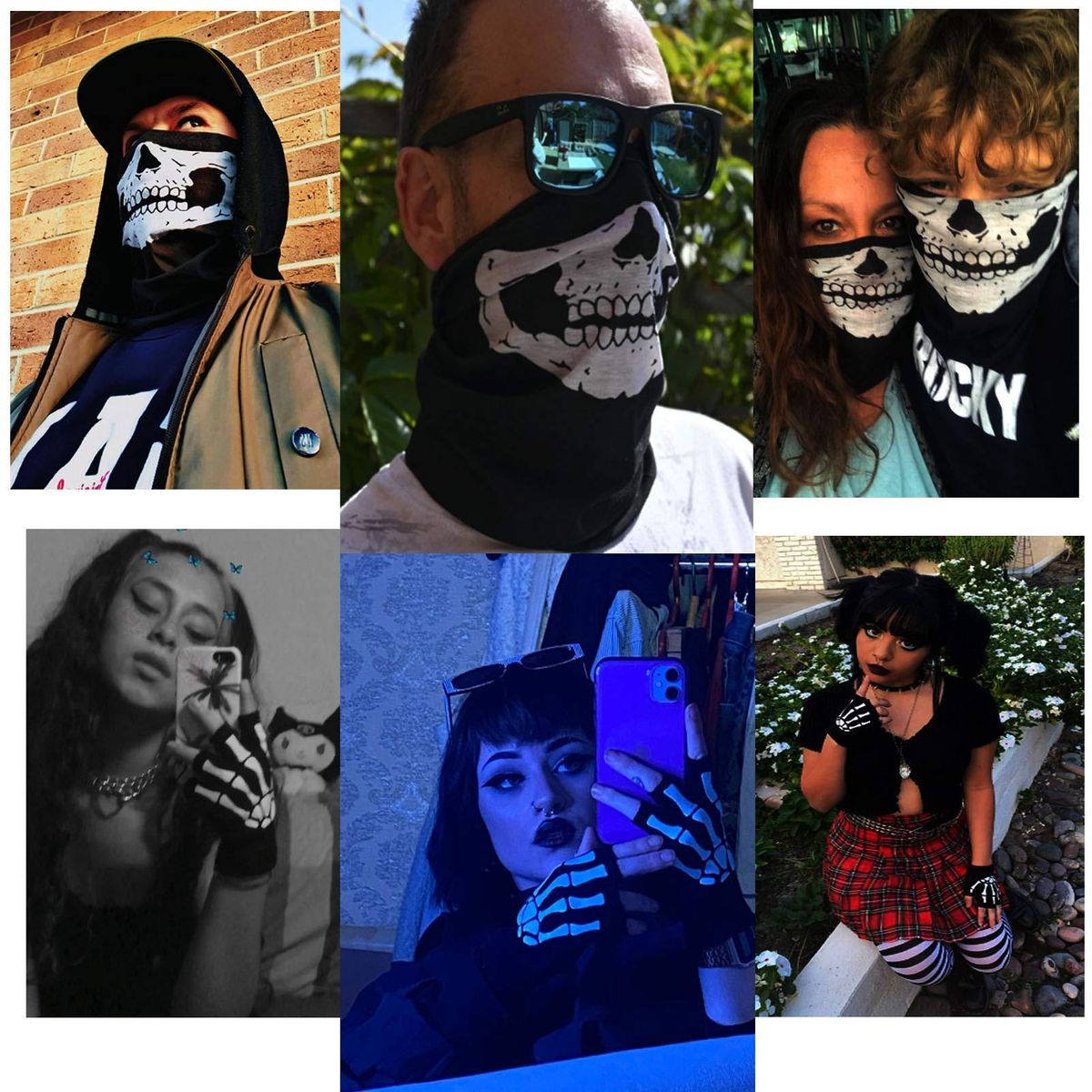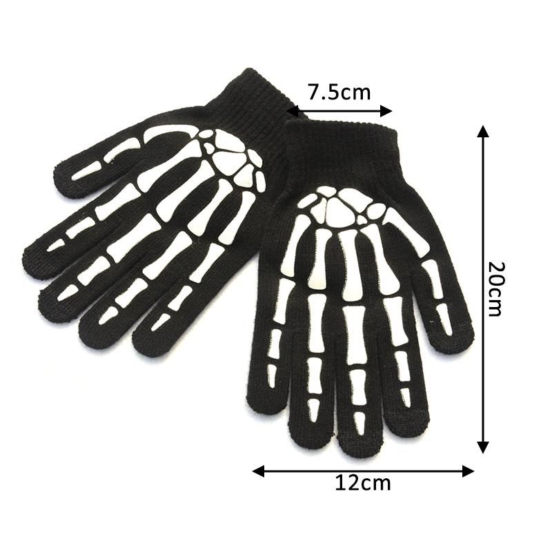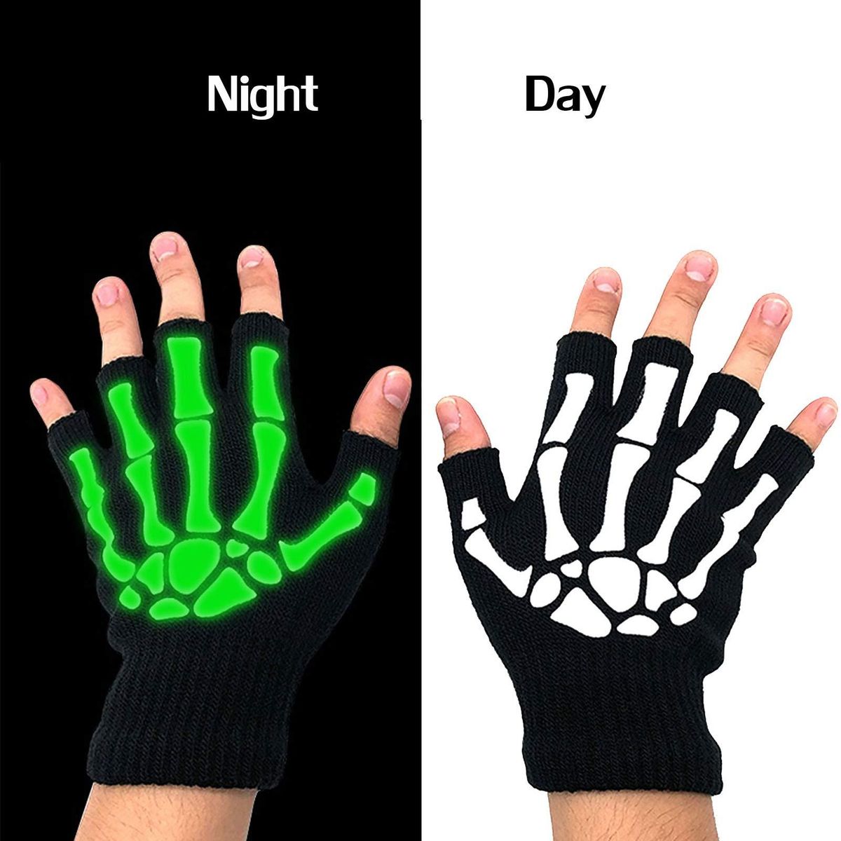 Skeleton Gloves Stretchy Fingerless Hand Warmer Skeleton Pattern Gloves Winter Warm Luminous Gloves and Skull Face Mask Black