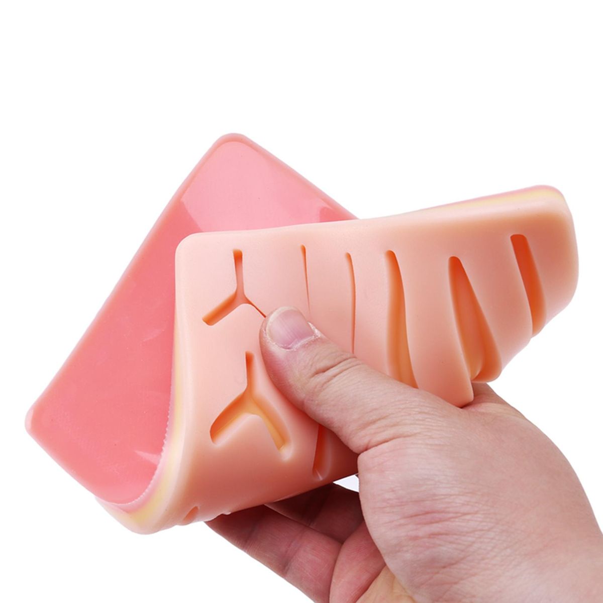 TEACHING AND PRACTICE With incisions of different depths and sizes, this suture pad is perfect for teaching. It's a great way to show different types of incisions The suture pad is a hygienic and portable alternative for practicing stitching and other forms of treatment.